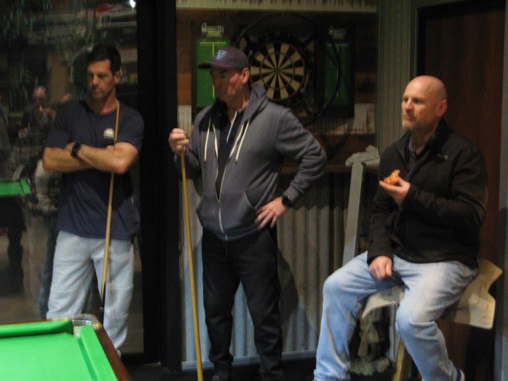 Well now for the deciding frame, so tight and every one had a hand in potting some great balls but we were into the final 2 balls with the Hanley crew 13 points up, Harry had a shot on the pink and it sat in the pocket enabling Pat to sink that and then sink the black, so after 3 frames we are square. There is again a coin thrown into the air and the Hanley’s win the toss and send in Pat and Bruce, after some discussion Pat said to Bruce I will play it safe and asked Bruce what he will do and Bruce stated I will have a go, so that was the decision.